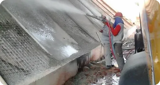 Concreto lançado com pressão para formar superfícies seguras e reforçadas. Usado em contenções e acabamentos de taludes.