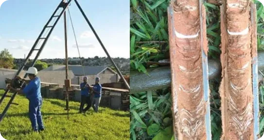 Usada em solos muito duros, onde a sondagem comum não consegue penetrar. Garante análise precisa mesmo em áreas com rochas.