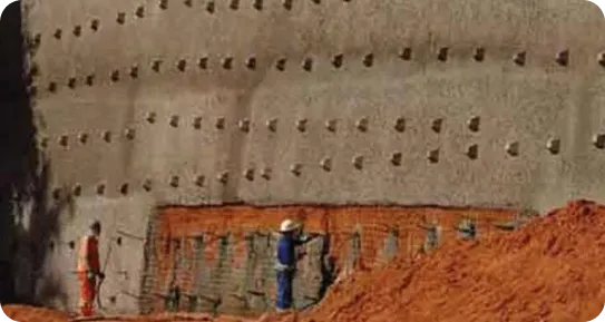 Reforço de taludes e encostas. Usa grampos metálicos para estabilizar o solo e evitar deslizamentos.